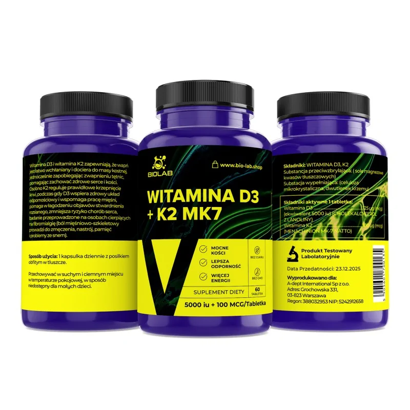 Samostatně je vitamin K2 zodpovědný za správnou srážlivost krve, zatímco vitamin D3 podporuje zdravý imunitní systém a podporuje správnou funkci svalů. Dostatečná hladina vitaminu D v těle je zásadní pro správné fungování imunitního systému a pro podporu dobré kondice a pohyblivosti.