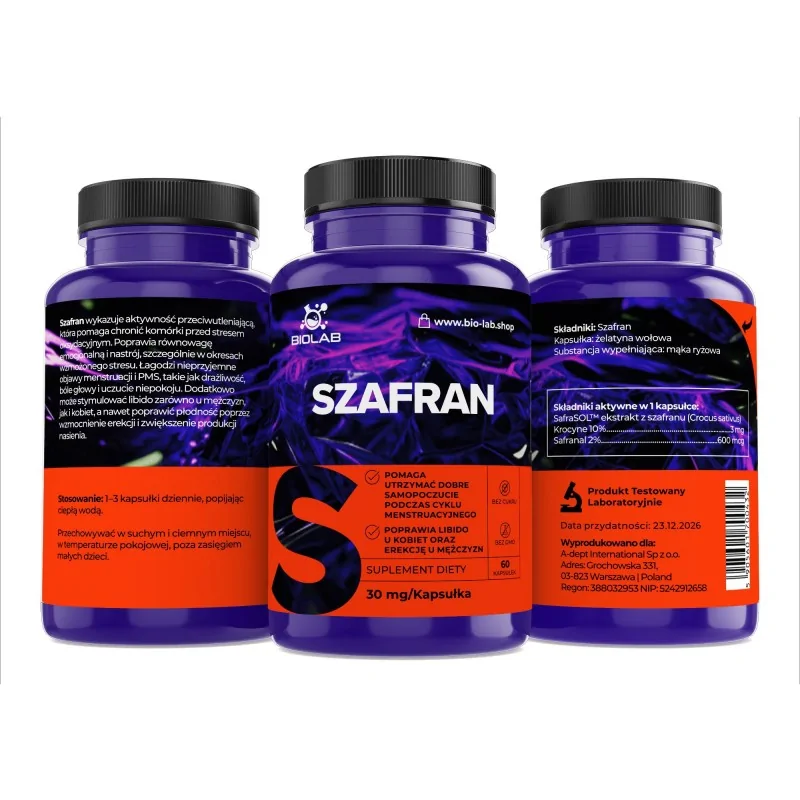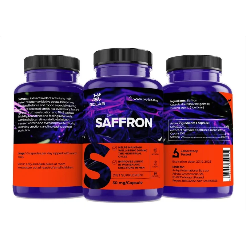 Balení obsahuje 60 kapslí Šafránu 30mg.