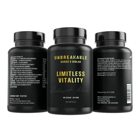 Objednejte si Limitless Vitality z řady UNBREAKABLE Karaś x Biolab ještě dnes a zažijte energii, soustředění a regeneraci na vyšší úrovni – pro sportovce i každého, kdo chce překonávat své hranice.